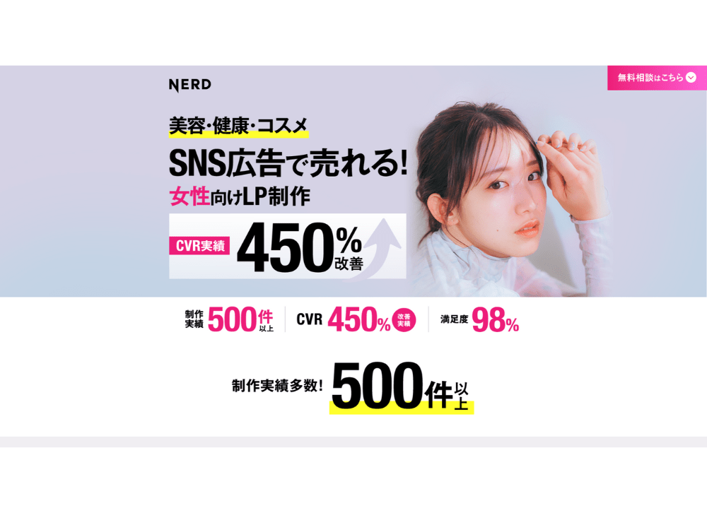 NERD株式会社 美容・健康・コスメのSNS広告で売れる女性向けランディングページ制作サービスをリリース