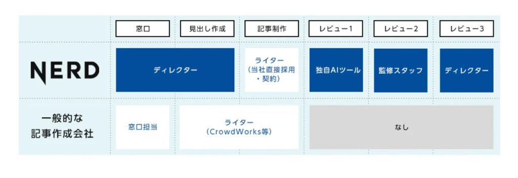 ■「SEO記事制作」サービスにおける他社との違い
