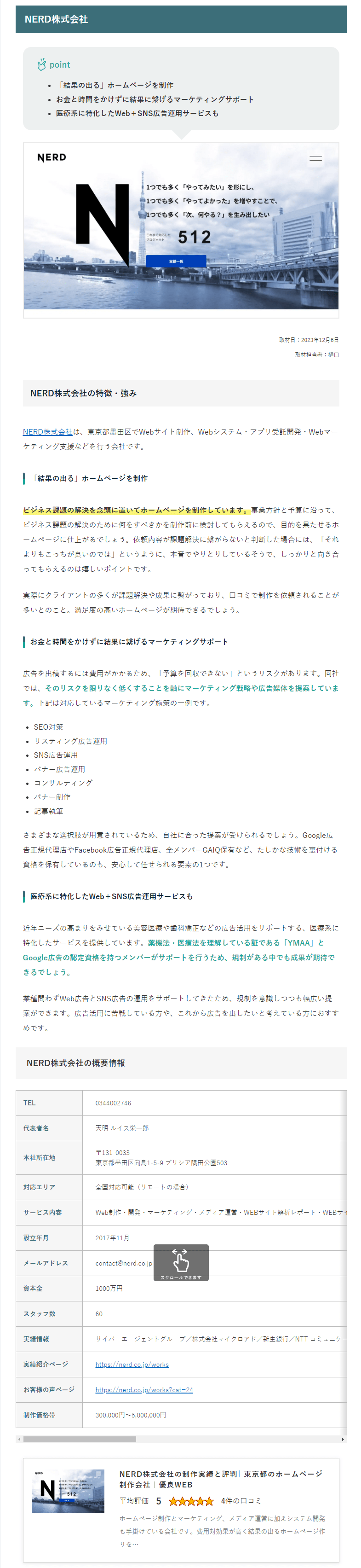 ホームページ制作会社検索サイト「優良WEB」の「東京都のホームページ制作会社おすすめ26選!」にNERDが掲載されました!