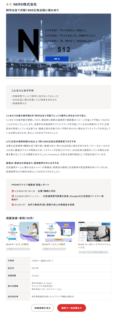 NERD株式会社が、「PRONIアイミツ」にて、「【プロ監修】LPO代行会社13選」の1社として紹介されました!