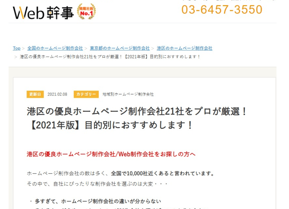 ホームページ制作会社掲載数No.1の相談・依頼サイト「Web幹事」にて、「【2021年版】港区の優良ホームページ制作会社」としてNERDをご掲載いただきました!