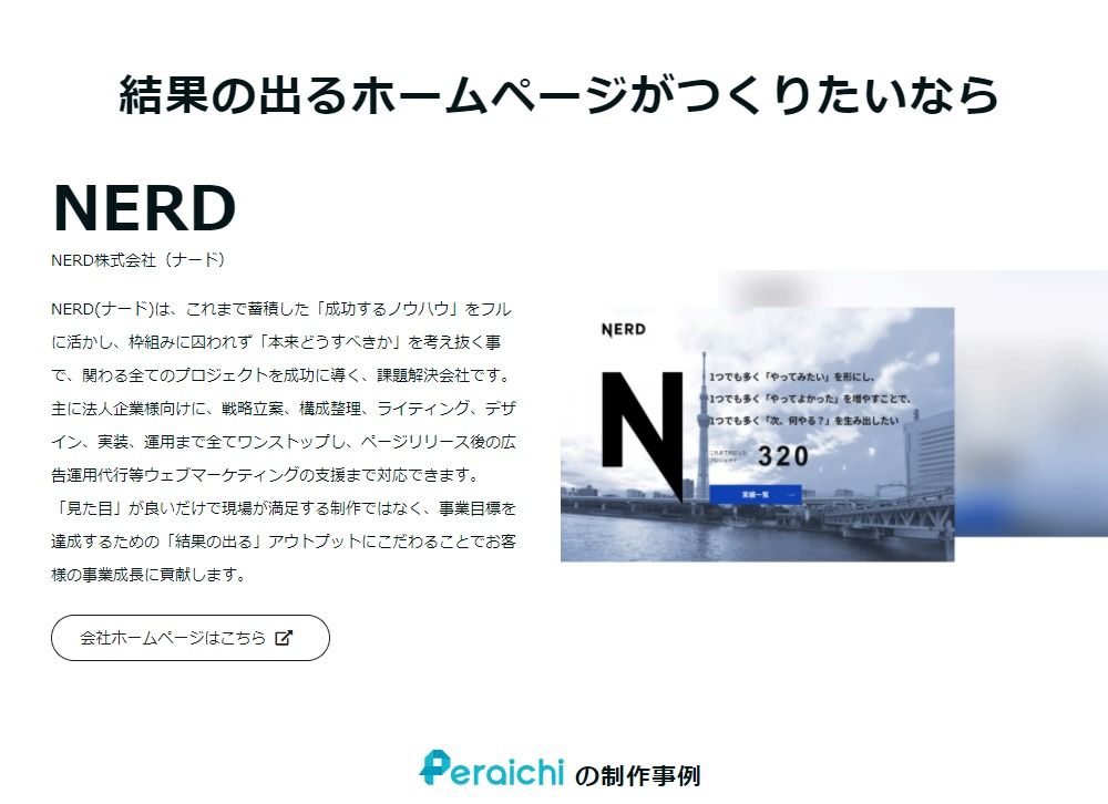 NERD株式会社 ホームページ制作サービス「ペライチ」の制作代行パートナーに