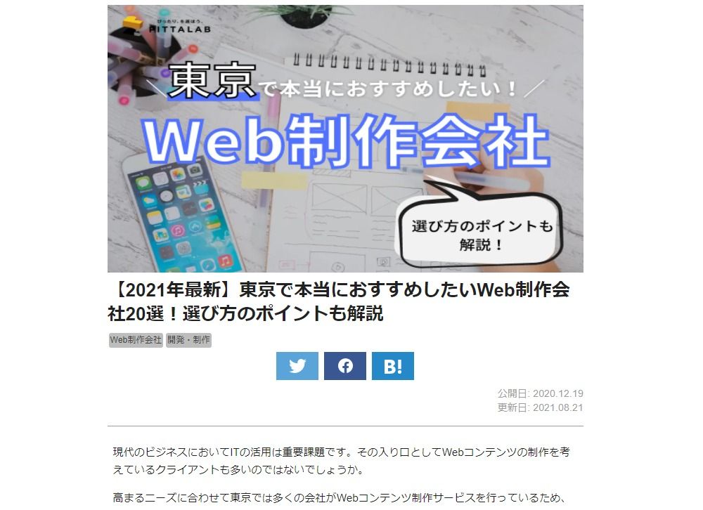 「PITTALAB」にて「東京で本当におすすめしたいWeb制作会社」に選ばれました!