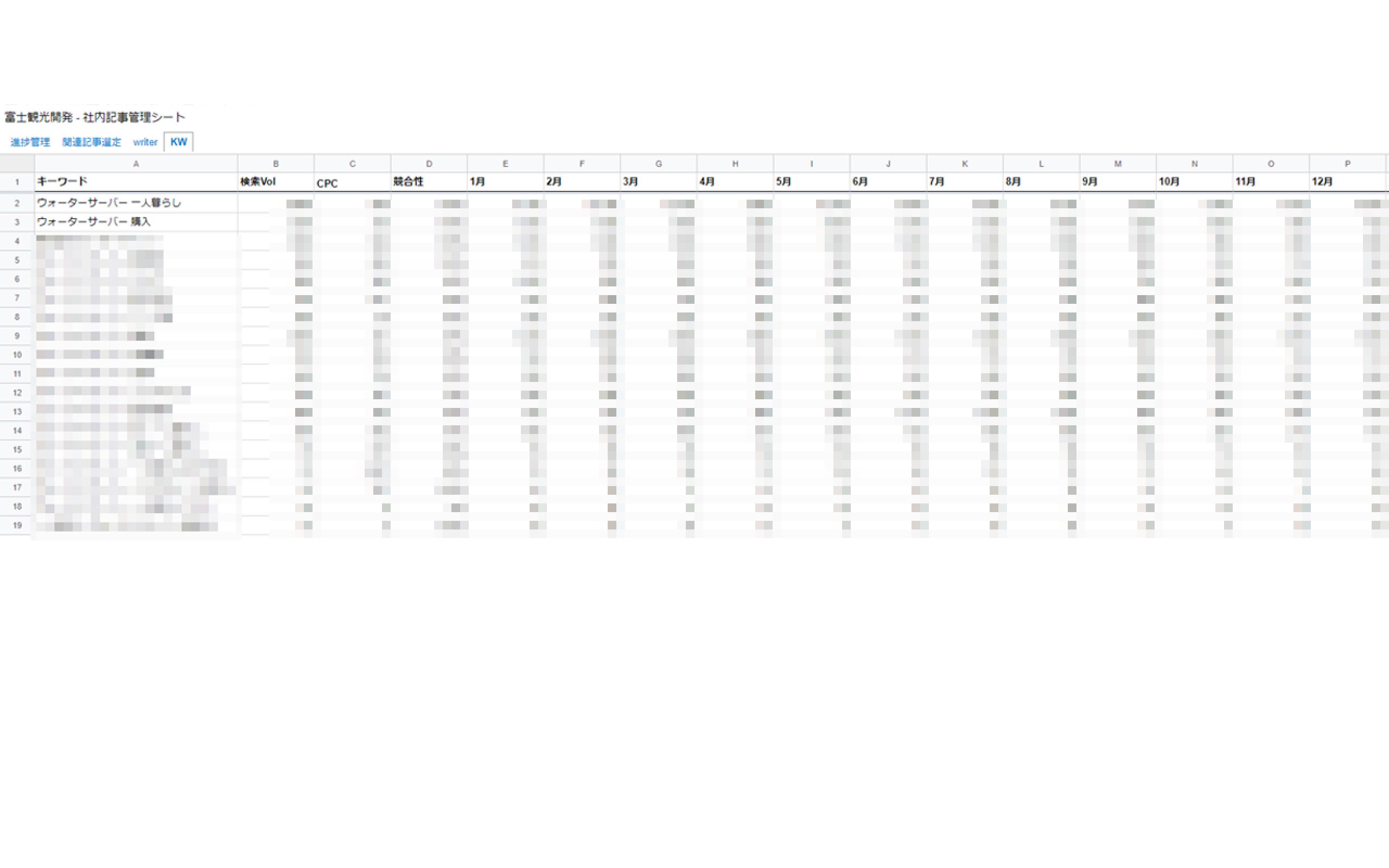 SEO対策のコラム記事を作成するにあたり、どういうキーワードを増やせばgoogleでの検索結果上位に来るかを調査し、効率よくキーワード選定を行いました。選定したキーワード1つにつき1記事を作成する事とし、検索結果上位記事を参考の上、サイト訪問者が記事を通じて知りたい内容を検討し、見出し作成を行いました。