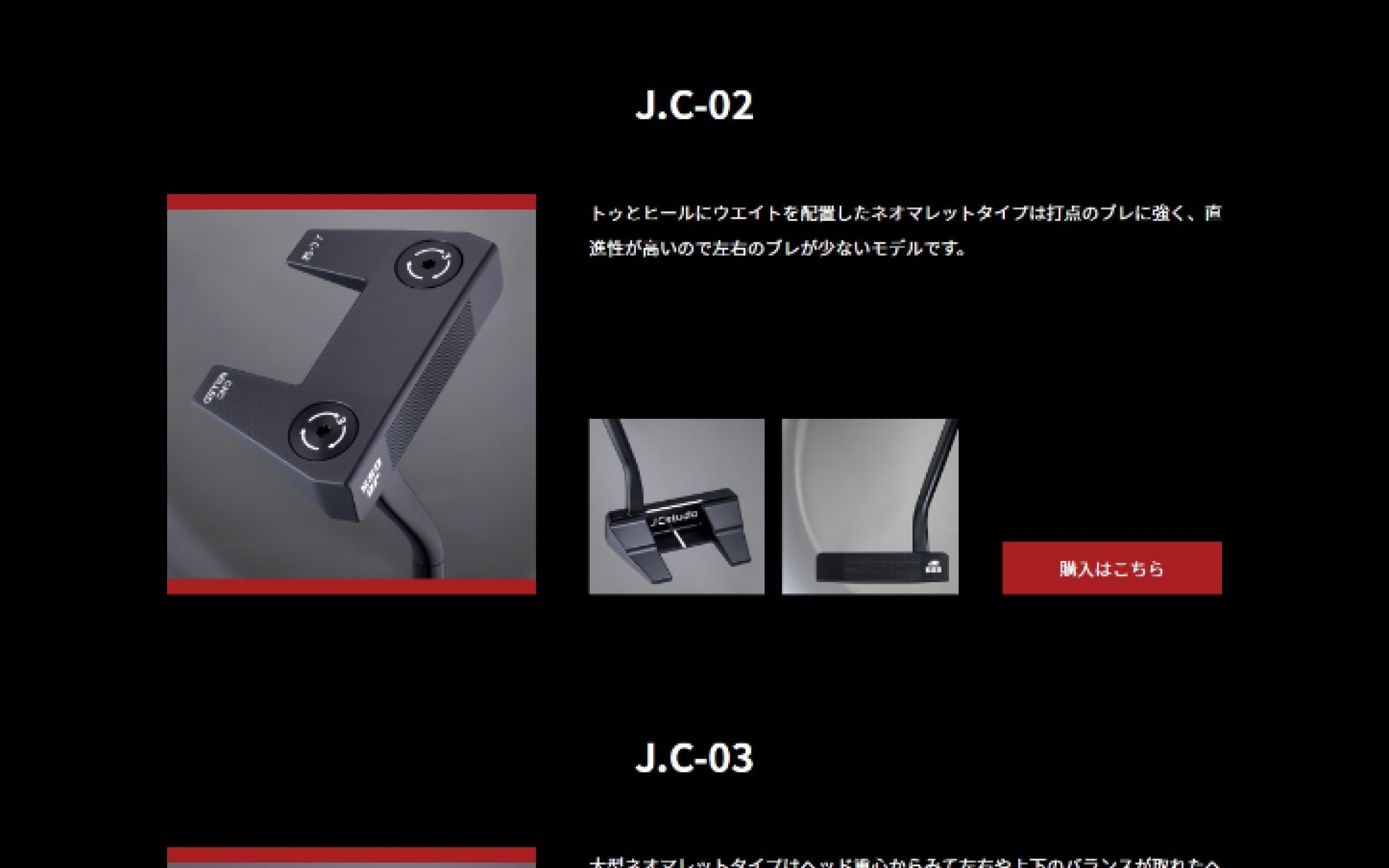 こちらはゴルフ機器の商社である株式会社渡辺製作所様から頂戴した案件です。同社での取り扱いブランドが増えたため、新たにブランドサイトを作りたいということで、NERDにお声がけいただきました。今回はJ.C studioというドイツのゴルフパターメーカーについてのブランドサイトを作成させていただきました。クライアント様より「できるだけ安く、早く」というご要望を頂戴しておりました。
