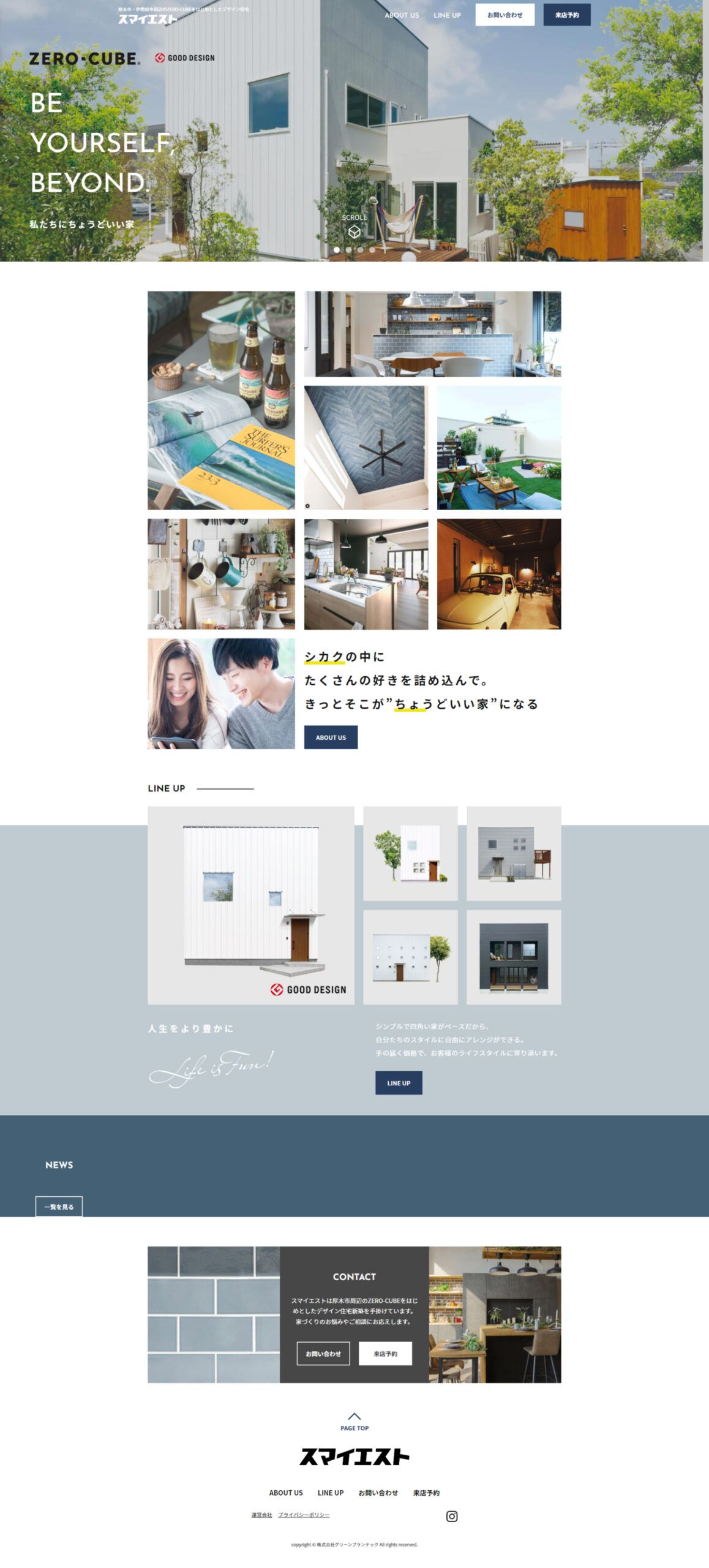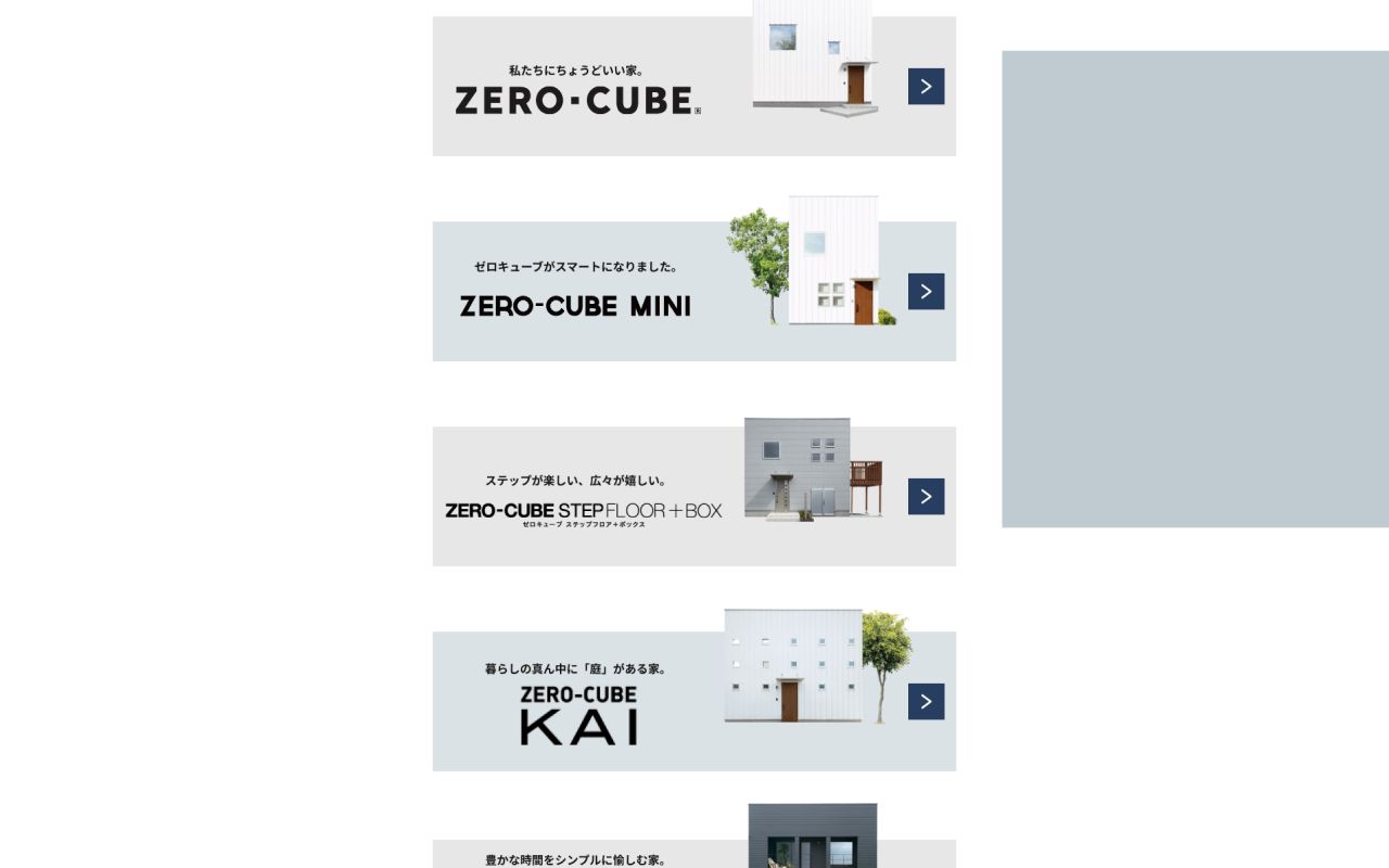https://east.sumaiest.jp/zerocube/厚木市・伊勢原市などを中心にサービス展開をしている「株式会社グリーンプランテック」のサービスサイトの事例です。お客様と一緒に最適な住まいをクリエイトする新しい形のリフォームサービス「スマイエスト」のサービスサイトの制作をNERDにご依頼いただきました。 新サービスローンチの準備と並行してサービスサイトの構成を共に検討し、ニーズに応じた デザイン住宅のパターンを視覚的に理解いただけるようなサービスサイトを目指しました。