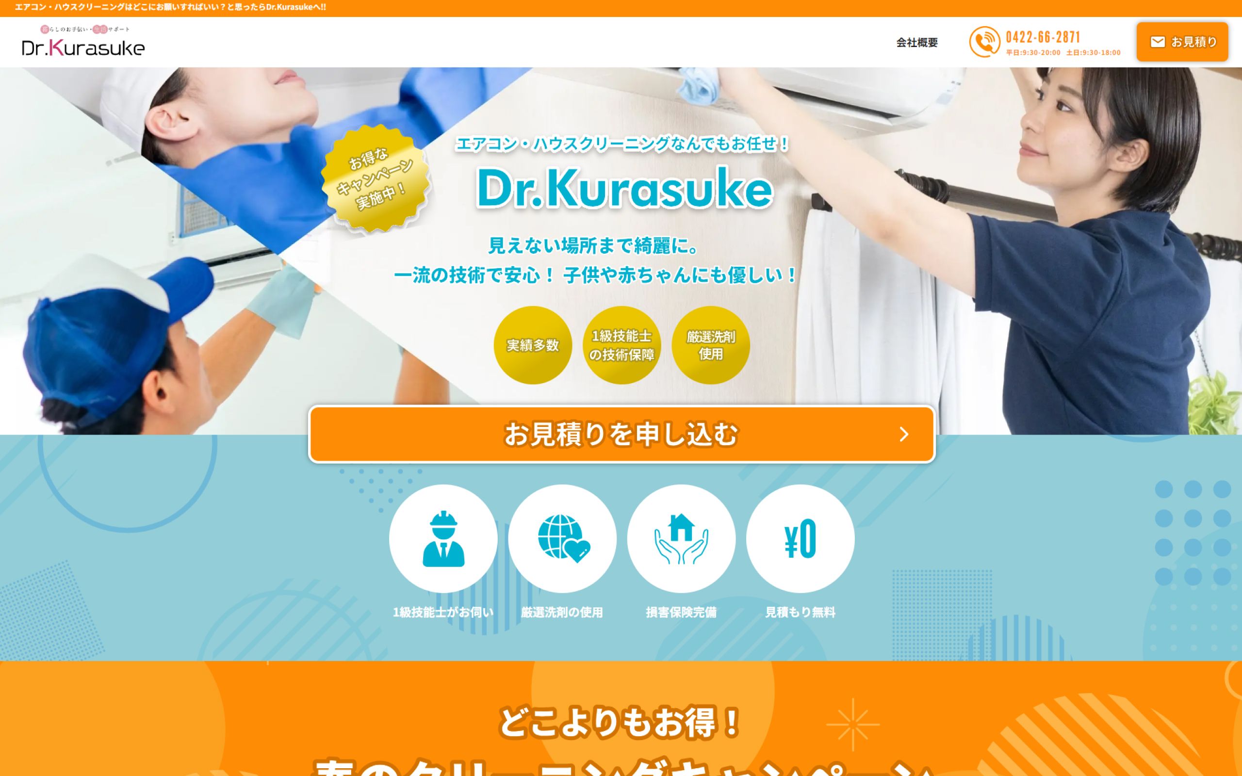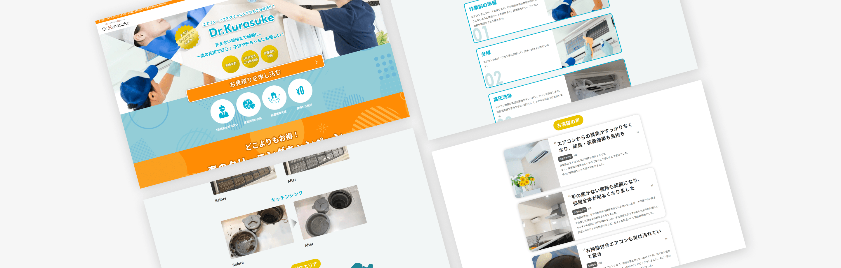 https://drkurasuke.com/「株式会社スポーツマインド研究所」は、エアコンのハウスクリーニング事業やエアコンハウスクリーニングの講習会を行っている会社です。この度、エアコンのハウスクリーニングについて、広告運用のためのランディングページ(LP)制作にあたり、NERDにご依頼をいただきました。