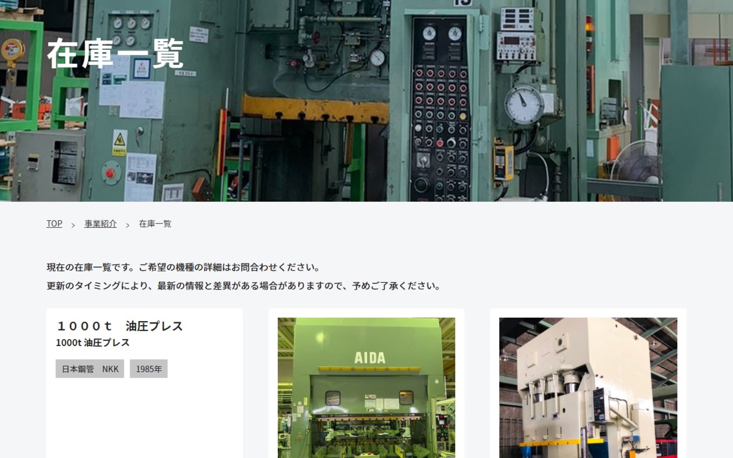 大型プレス中古機械の貿易商社