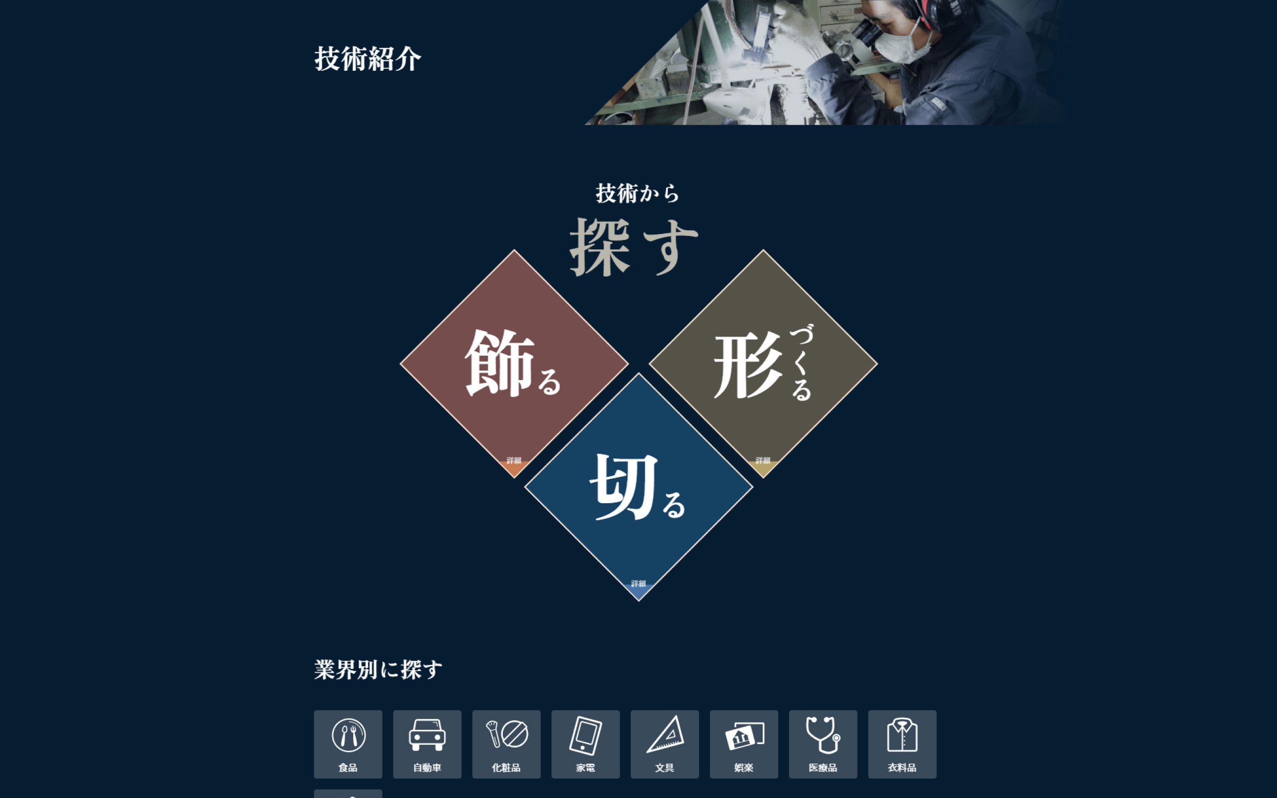 コーポレートサイト制作にあたり、「形作る」「切る」「飾る」など、彫刻技術を駆使して何を作るのかという、提供する「DO」によってカテゴリ分けを行い、商品や技術を紹介するサイト構成を提案しました。