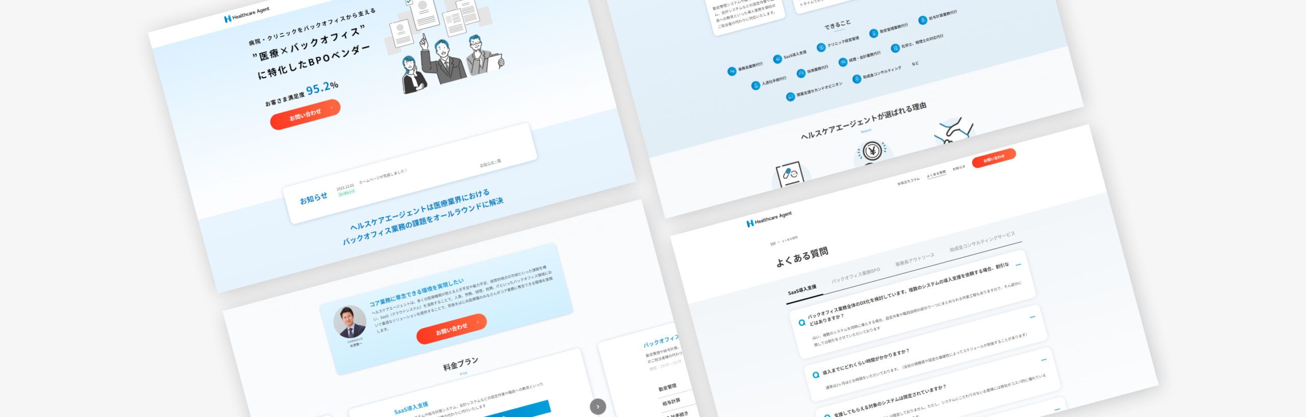 https://healthcare-agent.com/株式会社ヘルスケアエージェントは、クラウドシステムを活用したコンサルティングを行い、医療・クリニック業界のバックオフィス業務を支援しています。この度、コーポレートサイトの制作について、NERDにご依頼をいただきました。