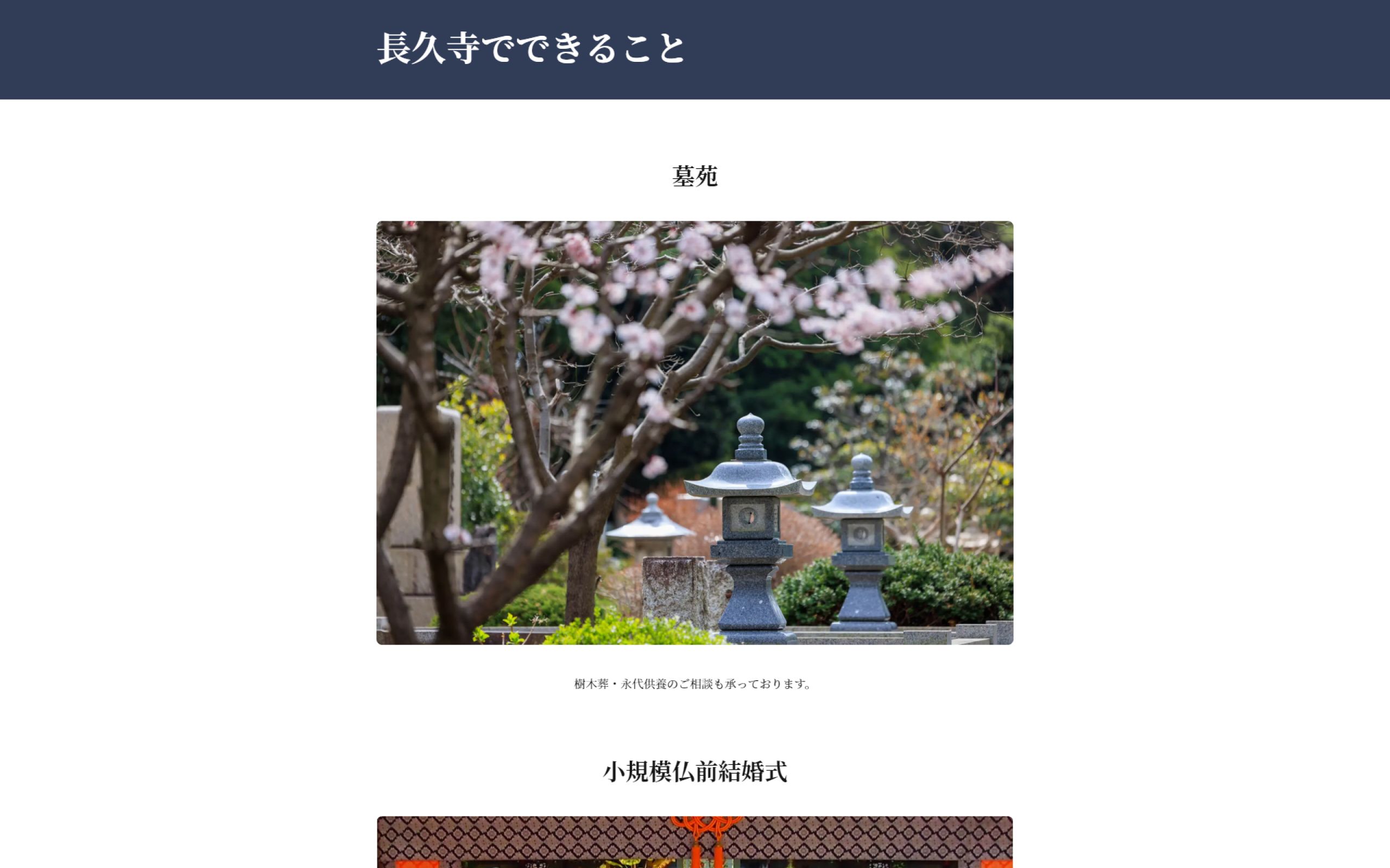 サイト制作にあたり、クライアント様は予算が限られている事、またサイト制作の知見が無いため、情報整理の方法が分からないという課題感をお持ちでした。また、所属する檀家さんのお知らせ等、情報を発信し続けられるサイトにしたいとのご要望もいただきました。