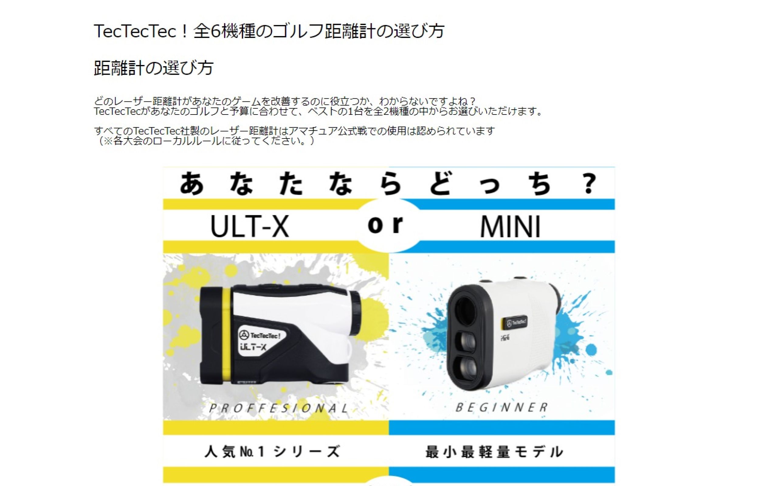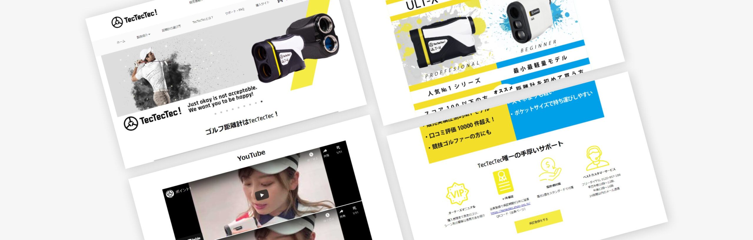 アメリカのアマゾンで3年連続で販売台数1位を達成したゴルフレーザー距離計「TecTecTec」の公式サイトを作りたいとお話をいただきました。大まかなデザインはアメリカ版公式サイトがあったものの全てがそのまま日本人に通じる内容ではなかったので、全体のデザインを維持しつつも日本マーケットに適切なサイトを作りたいとお考えでした。