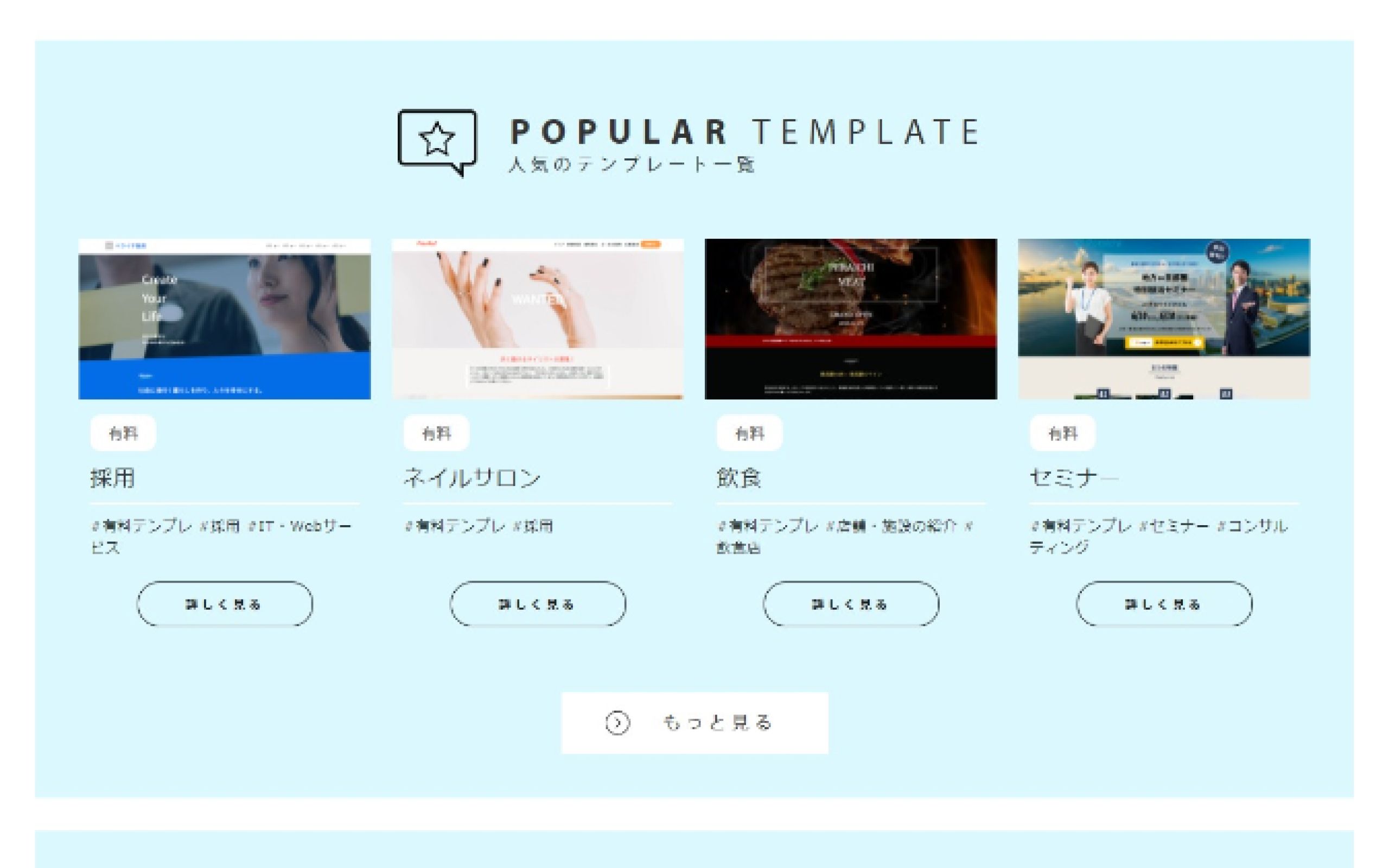 リスティング広告用ランディングページにて、特にペライチ様の特徴である「テンプレート 制作」と言うキーワードでのユーザー獲得を狙うランディングページ制作ということで、人気のテンプレートを無料・有料問わず掲載させていただき、当該キーワード検索されるユーザー様の情報収集ニーズにマッチするコンテンツを用意させていただきました。