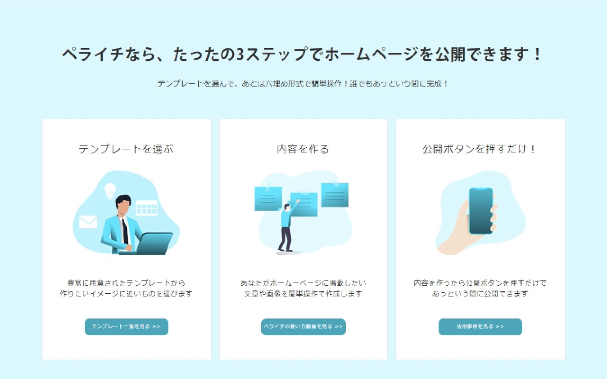 https://peraichi.com/landing_pages/view/template-pc-gカンタンにホームページを作成できるCMSサービスを提供する「株式会社ペライチ」様のランディングページ制作の事例です。2015年にリリースされて以降、中小企業の経営者や個人事業主の方に広く利用され、ユーザー数25万人以上を突破する注目のサービスです。今回は自社(ペライチ)のテンプレートデザインではなく新しいデザインでLPをうった際の効果検証を兼ねてランディングページ制作のご依頼をいただきました。ペライチ様の特徴である「テンプレート 制作」をキーワード検索されるユーザーのニーズにマッチするコンテンツを用意し、結果として広告改善に貢献させていただくことができました。