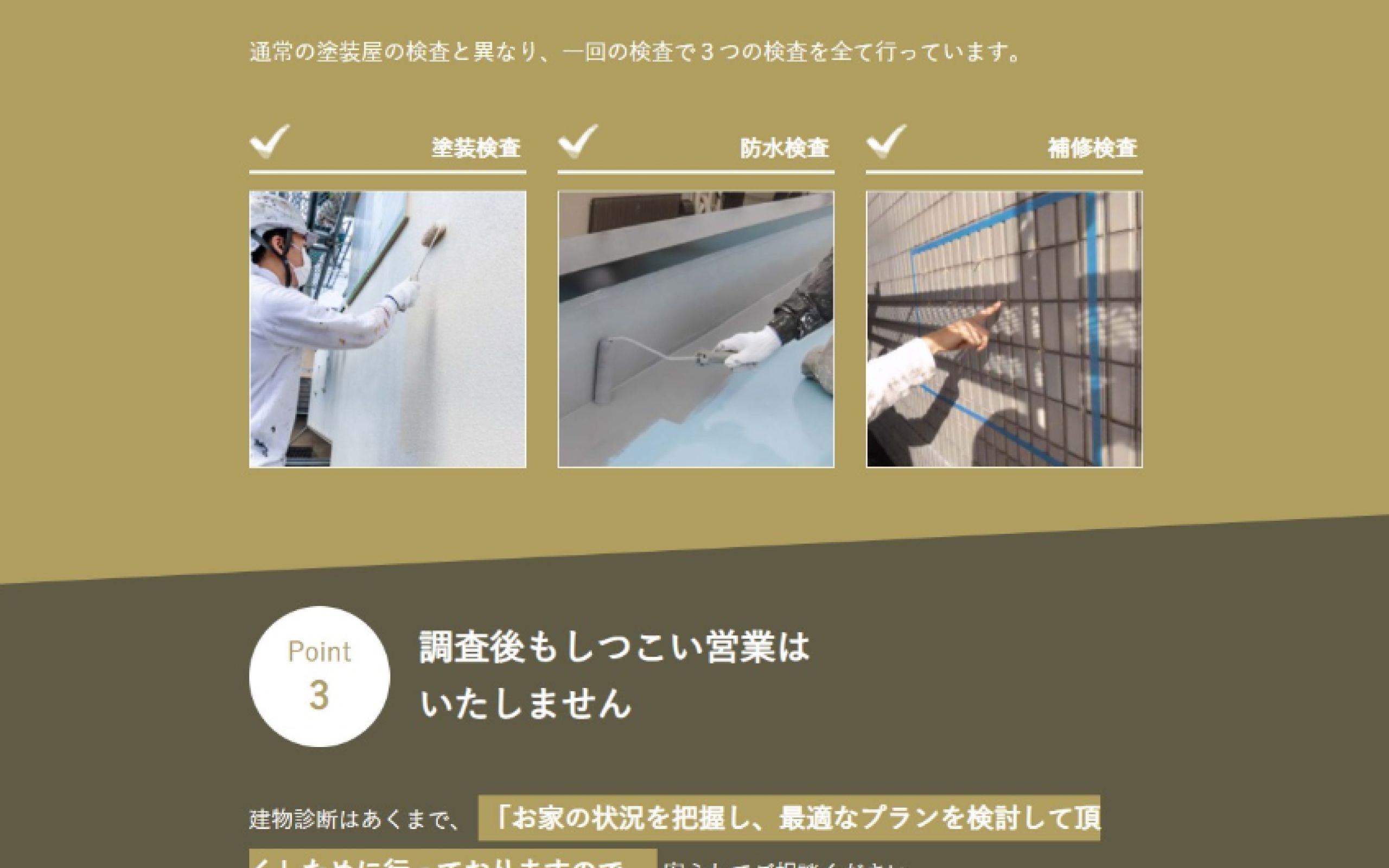 今まで口コミのみで仕事を受注していた外壁塗装会社様でしたが、広告運用を含め、露出を増やしていき、受注数を増やしていきたいという想いのもと、LPのご発注をいただきました。お問い合わせに繋げたいという目的ははっきりしていましたが、どのようにLPを作ればいいかわからないというお話から当社にご相談いただきました。