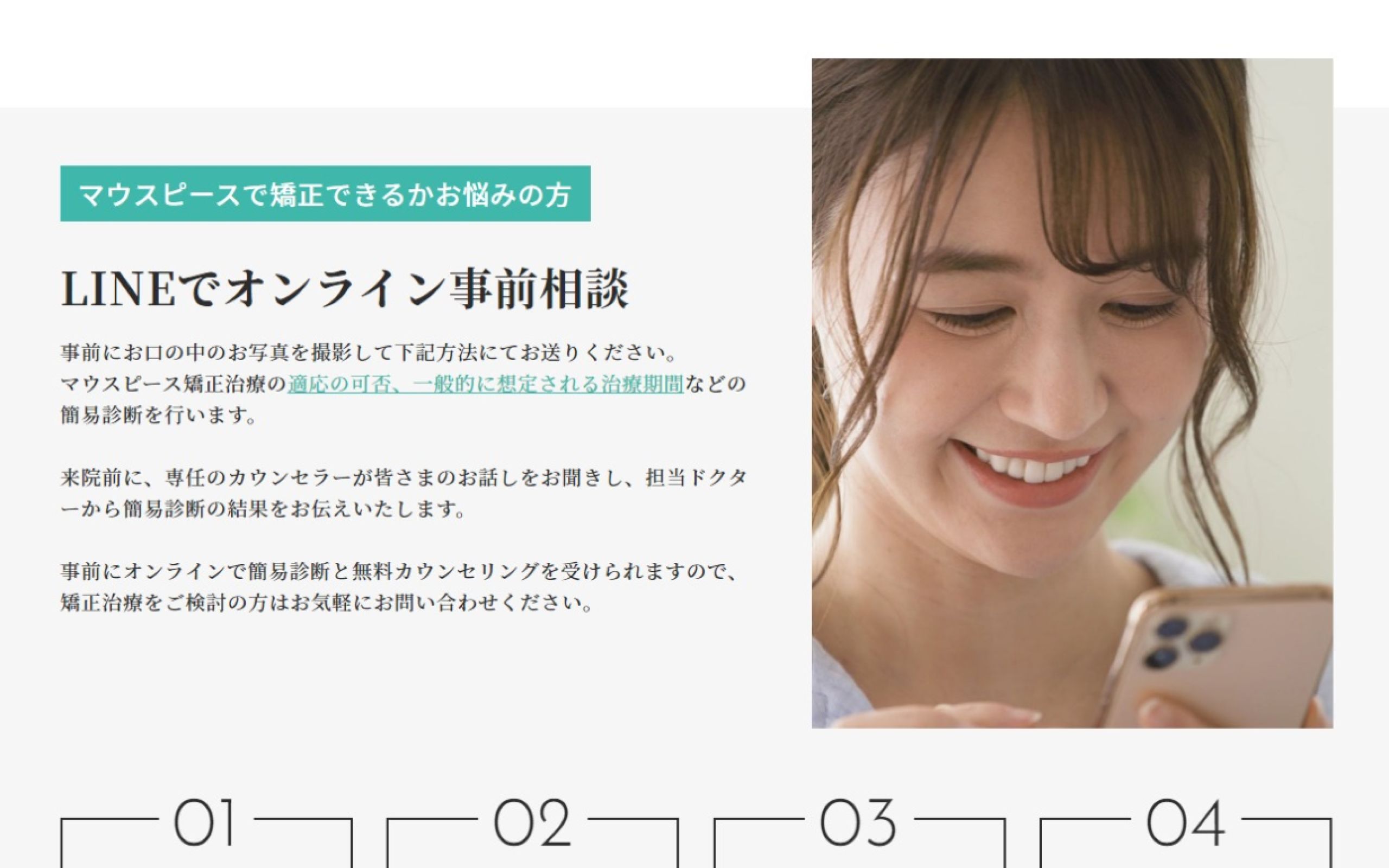 以前よりクライアント様にはマウスピース歯科矯正「インビザライン」についてご依頼をいただき、ランディングページを制作させていただきました。インビザラインには、前歯だけの矯正を行うインビザラインGOもというサービスもあり、新たに前歯の悩みを持っている方をターゲットに絞った「インビザラインGO」のランディングページの制作をご依頼いただきました。