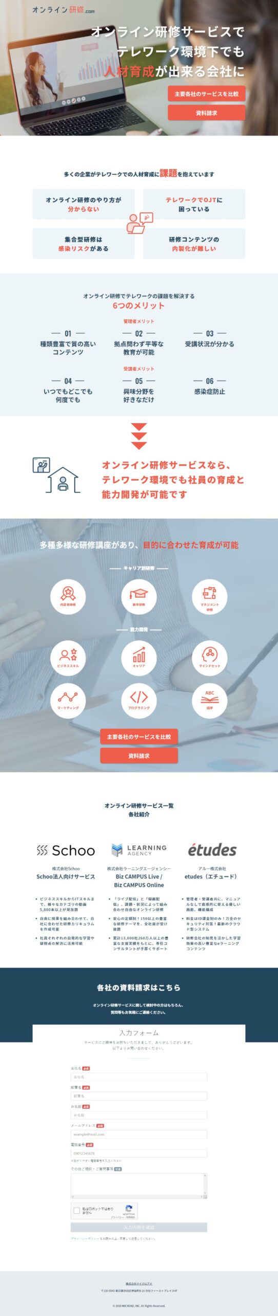 https://shirareru-match.microad.jp/online-training/データとテクノロジーを掛け合わせたマーケティングプラットフォームを提供する「株式会社マイクロアド」様のランディングページ制作の事例です。今回はコロナ禍におけるテレワークの環境でも人材育成ができるオンライン研修サービスについてLP制作をご依頼いただきました。スピード感と一定のクオリティを両立させる必要があり、プロジェクトマネジメントの成果もあり無事にリリースさせていただくことができました。