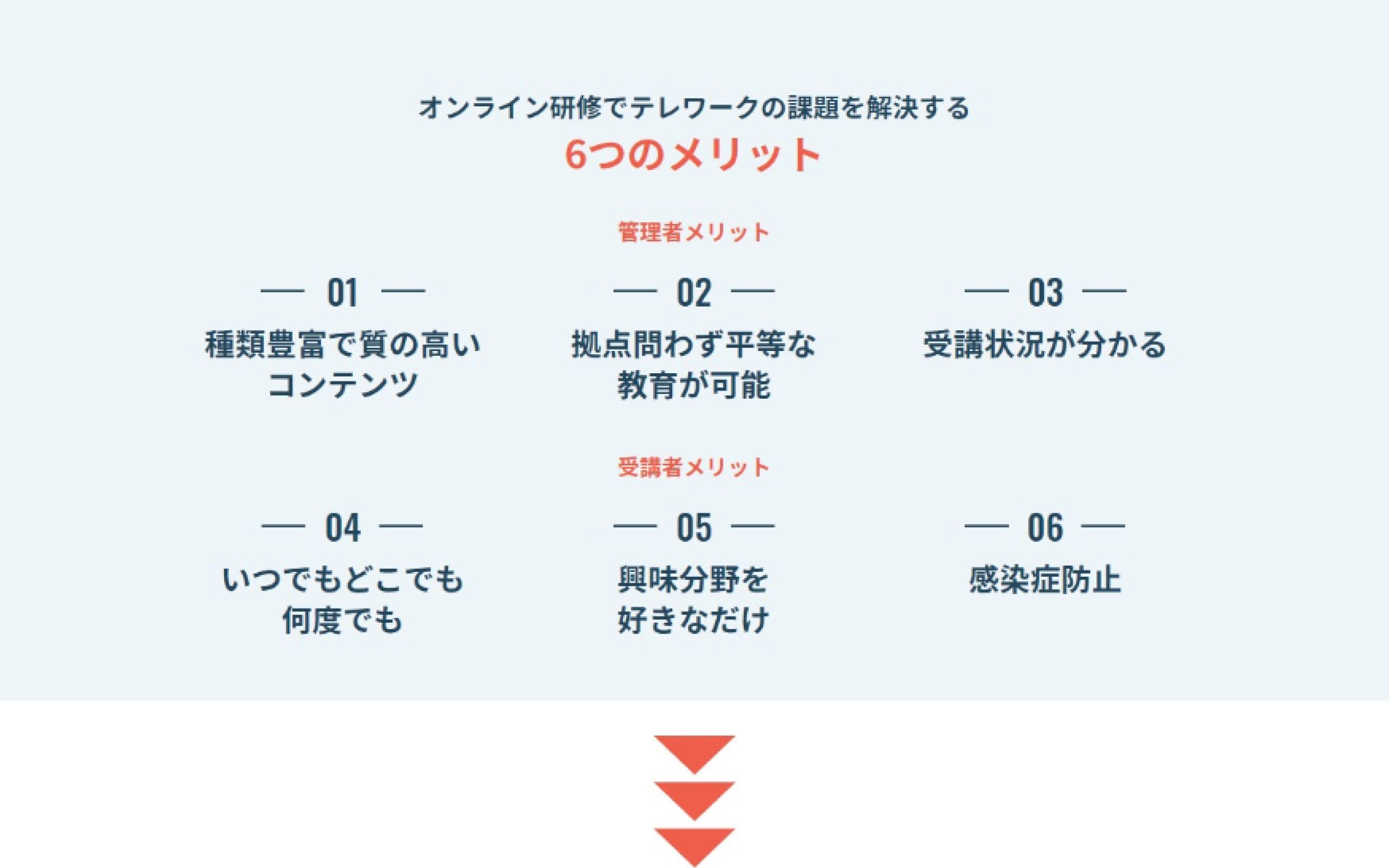 こちらのオンライン研修サービスは、クライアント様の新規事業の一環でした。時間と資金があまりかけられないなか、どのような反響があるかをみるためにサイトを形にしたいというご要望のもと、短納期で一定のデザインを担保する必要があり、NERDへご依頼いただきました。
