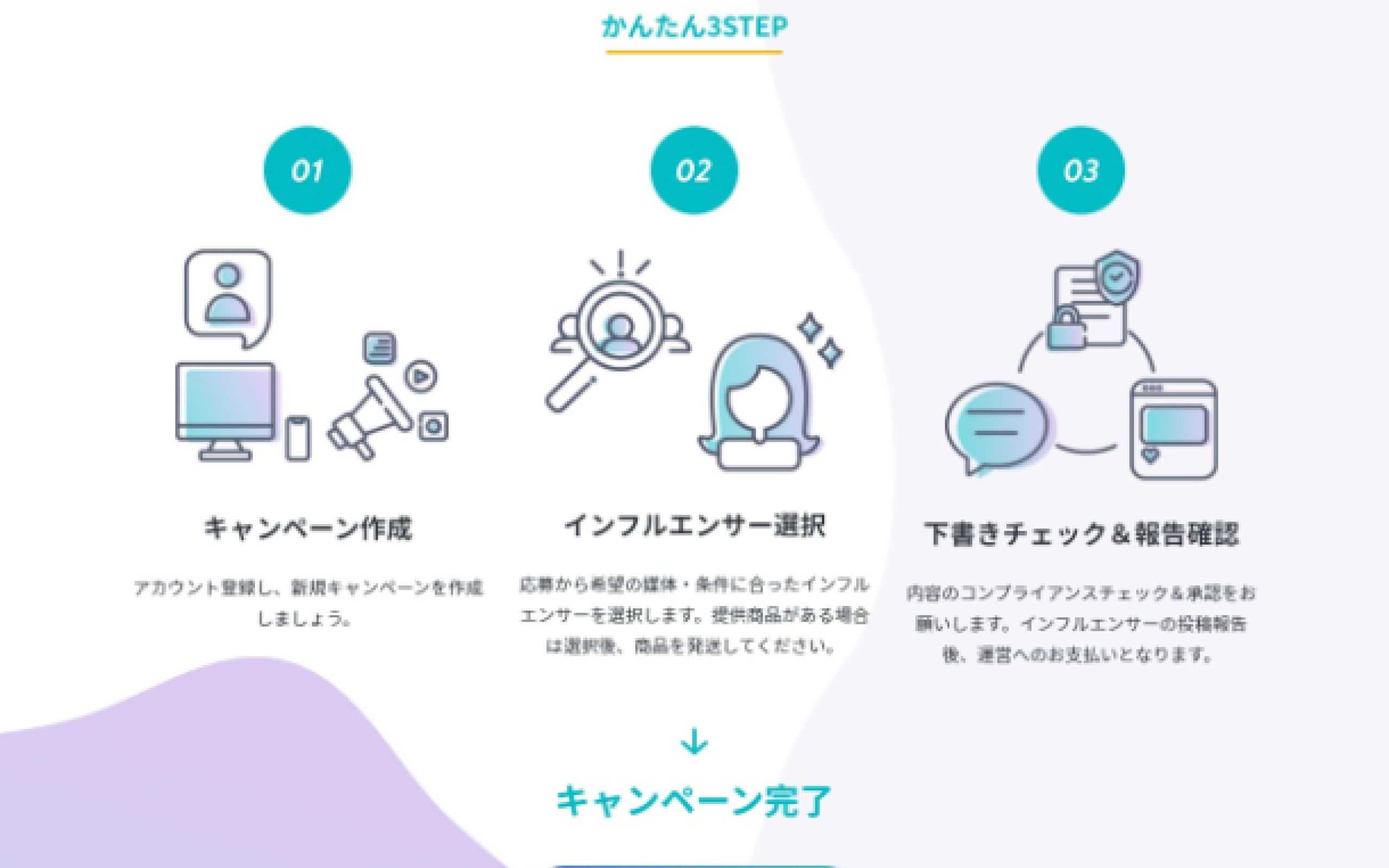 https://detect.influencer-works.com/インフルエンサーマッチングシステム「インフルエンサーワークス」を紹介するランディングページの制作事例です。こちらのシステムは株式会社NTTドコモが運営する新規事業創出プログラムの一環として提供されており、登録増加の課題解決のために新たなコンサルタントが介入するタイミングで、新しいLP制作をNERDにご依頼いただきました。インフルエンサー向け、広告主(企業)向けの2つのLPを制作し、それぞれターゲットに最適なアプローチができるようデザインを工夫致しました。