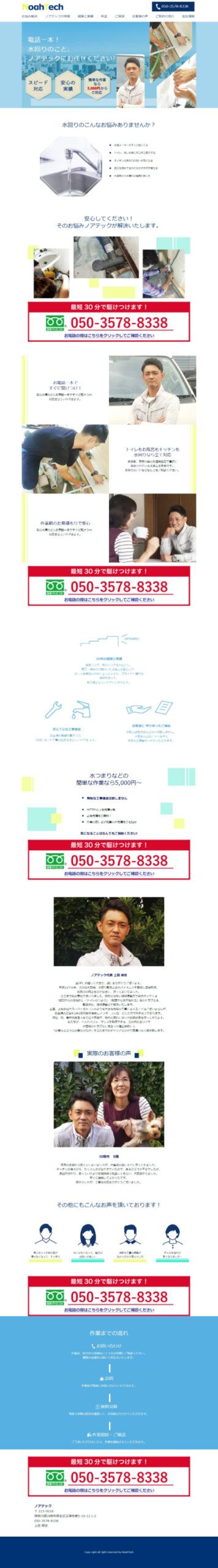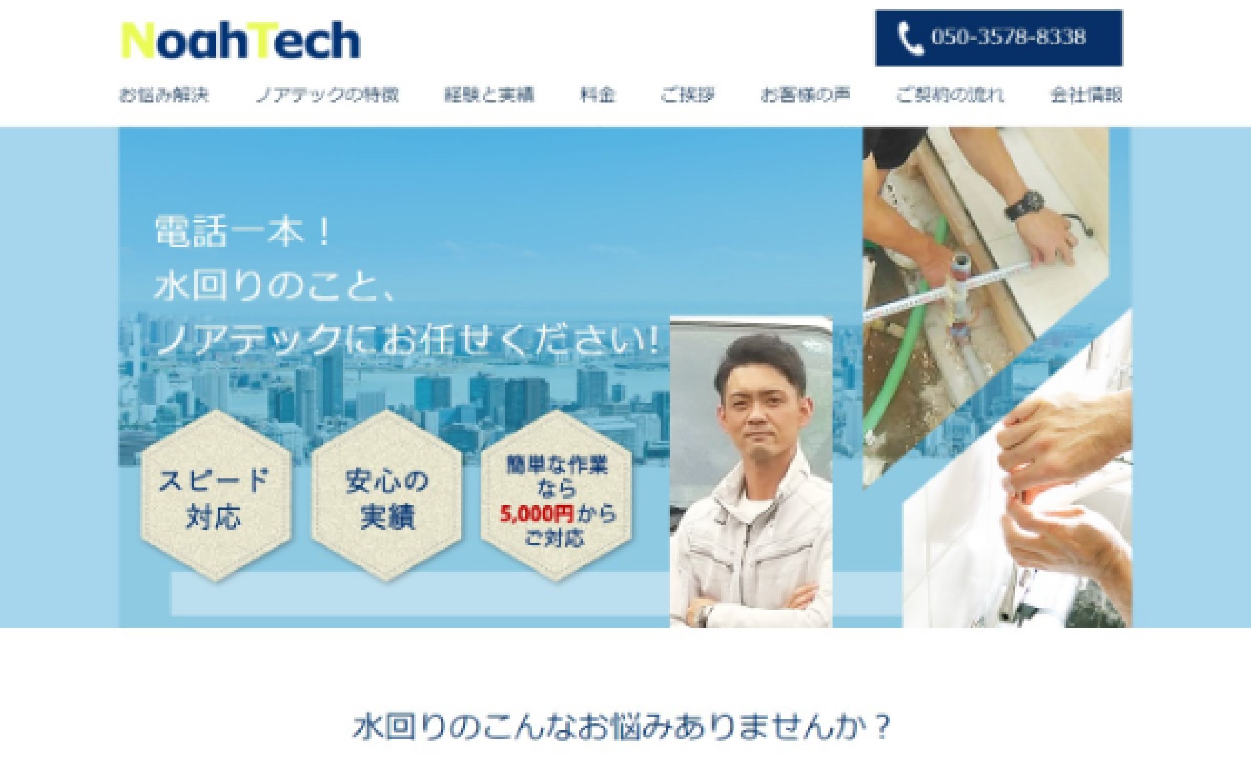 https://noah-tech.jp/水回りのトラブルを電話一本で解決してくれる水道修理会社「合同会社ノアテック」様の店舗ホームページ制作の事例です。こちらの会社では積極的にWebの集客に力を入れられており、有難いことに今回NERDに制作のご依頼をいただきました。Webに慣れていらっしゃらず、どのようにサイトにコンテンツを掲載すべきかわからないという課題を抱えていらっしゃいました。ヒアリングを重ねて要点を整理させていただき、制作を進めさせていただきました。お問い合わせの増加につながっているという嬉しいお声をいただいております。