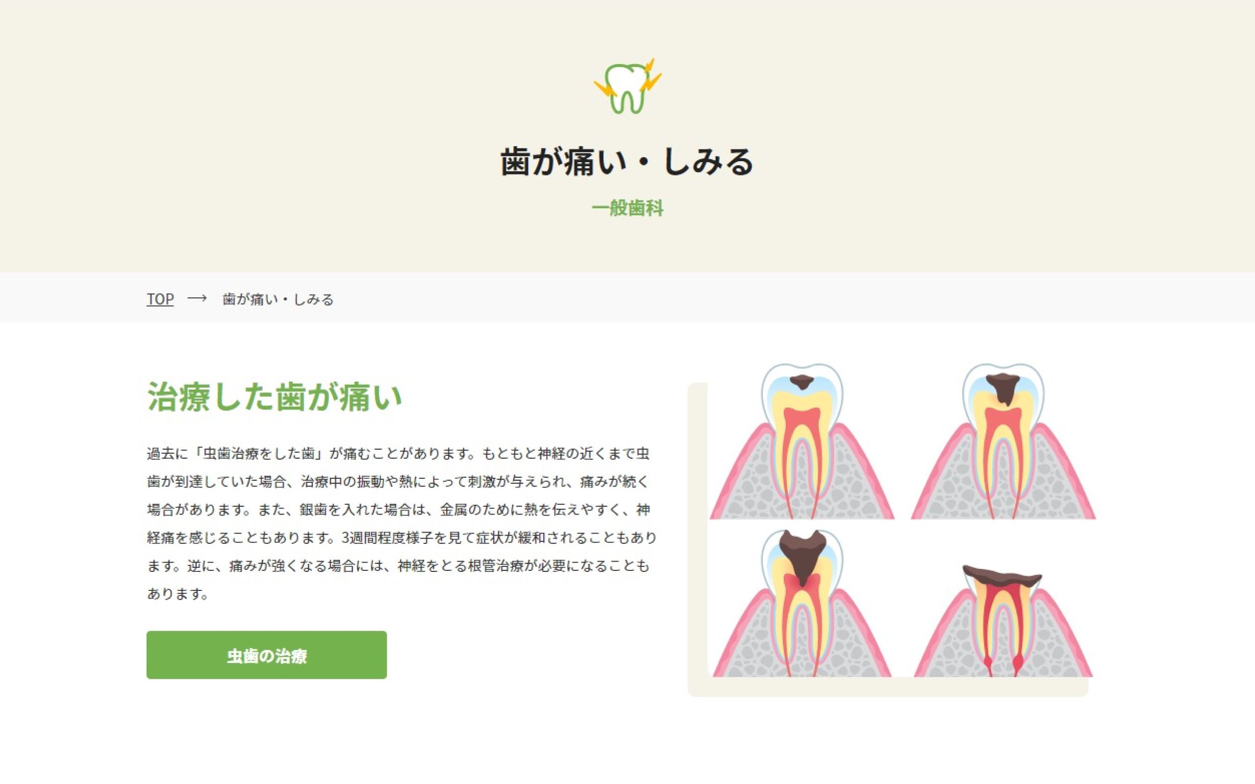 様々な歯の悩みを相談できる医院であることから、まず最初に「お悩みから探せる」ホームページにすることをご提案致しました。また、各ページにホワイトニングやマウスピース矯正などの広告ランディングページのリンクを設置し、思い当たる悩みがあればクリックして、すぐにご予約いただけるように致しました。そのほか、料金案内をわかりやすく整えたり、全体的に高級感や落ち着きを感じていただけるデザインにしたりなどの工夫を致しました。